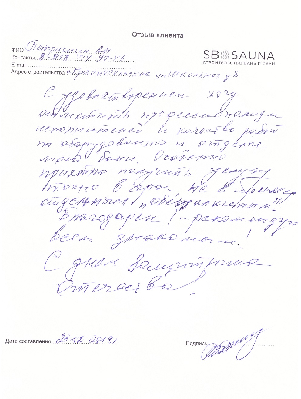 Отзыв наших клиентов