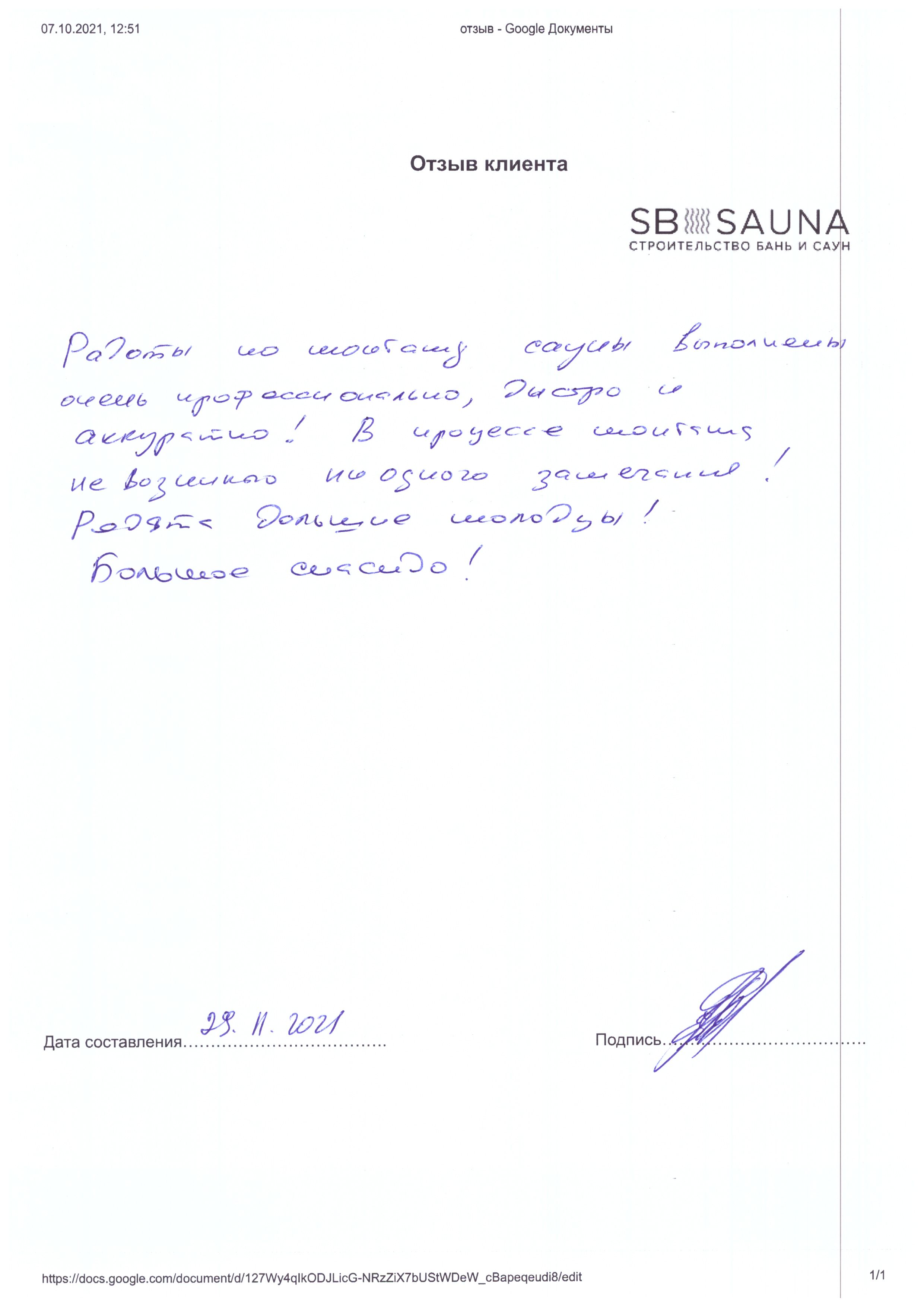 Отзыв наших клиентов